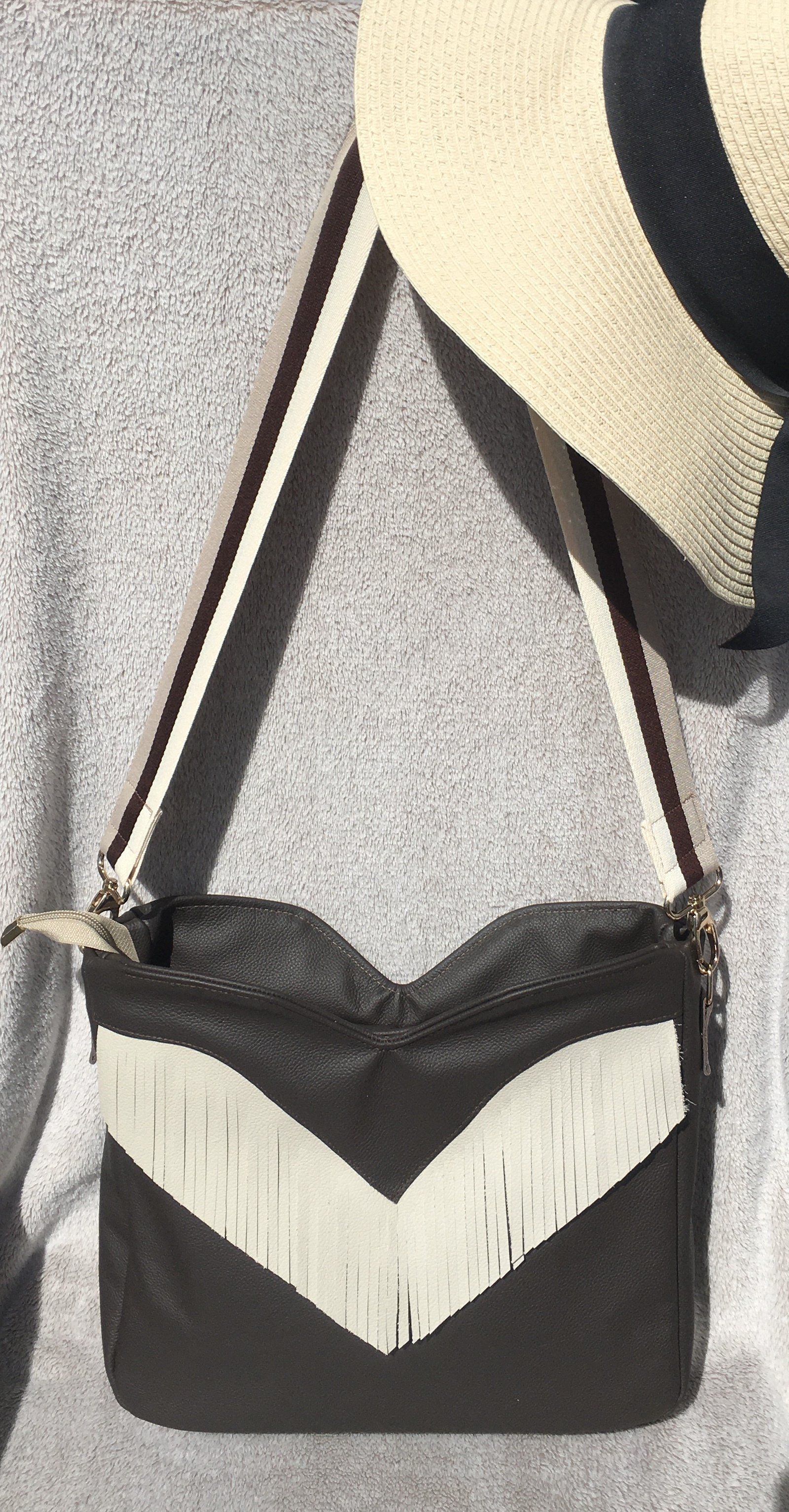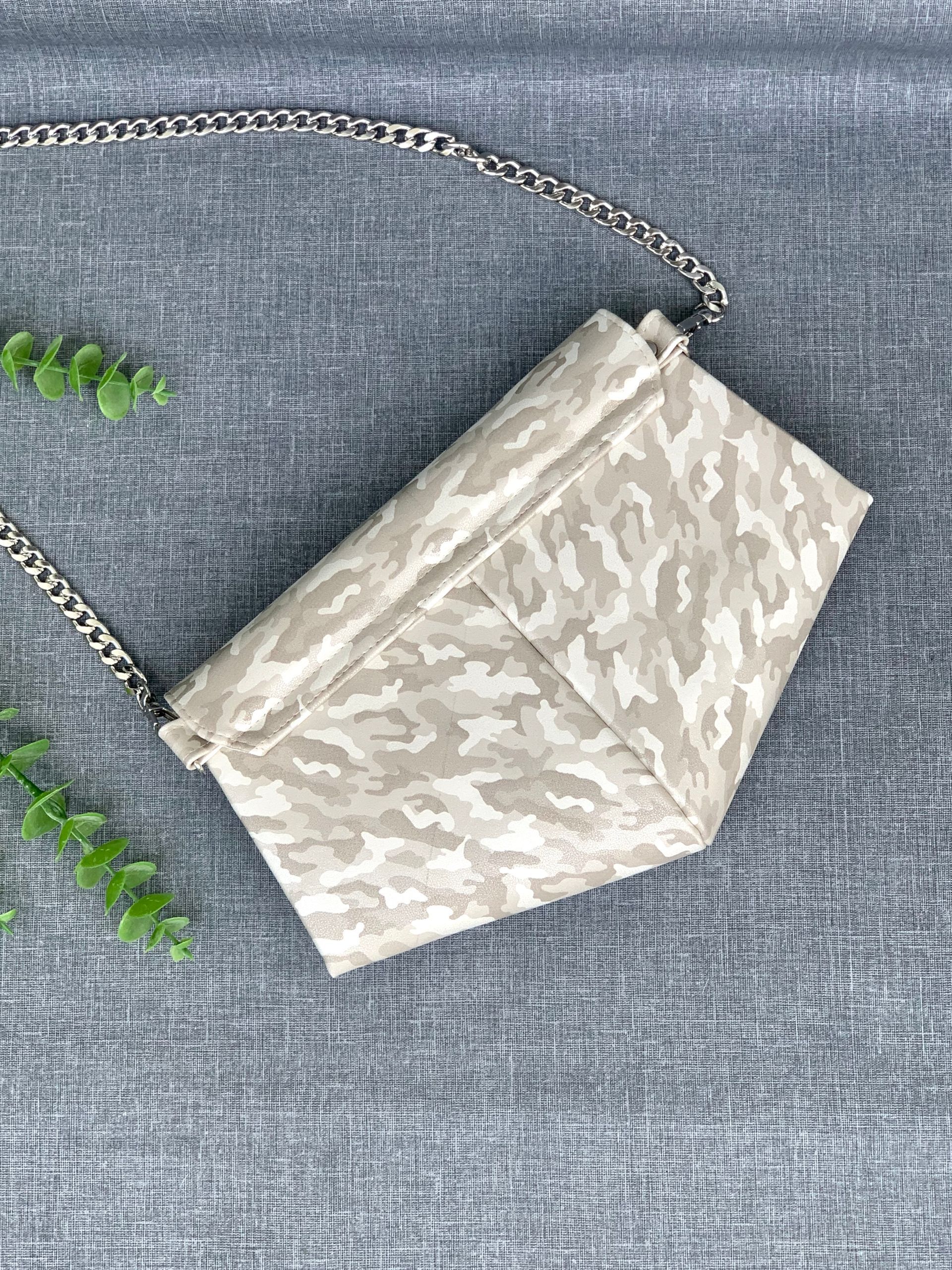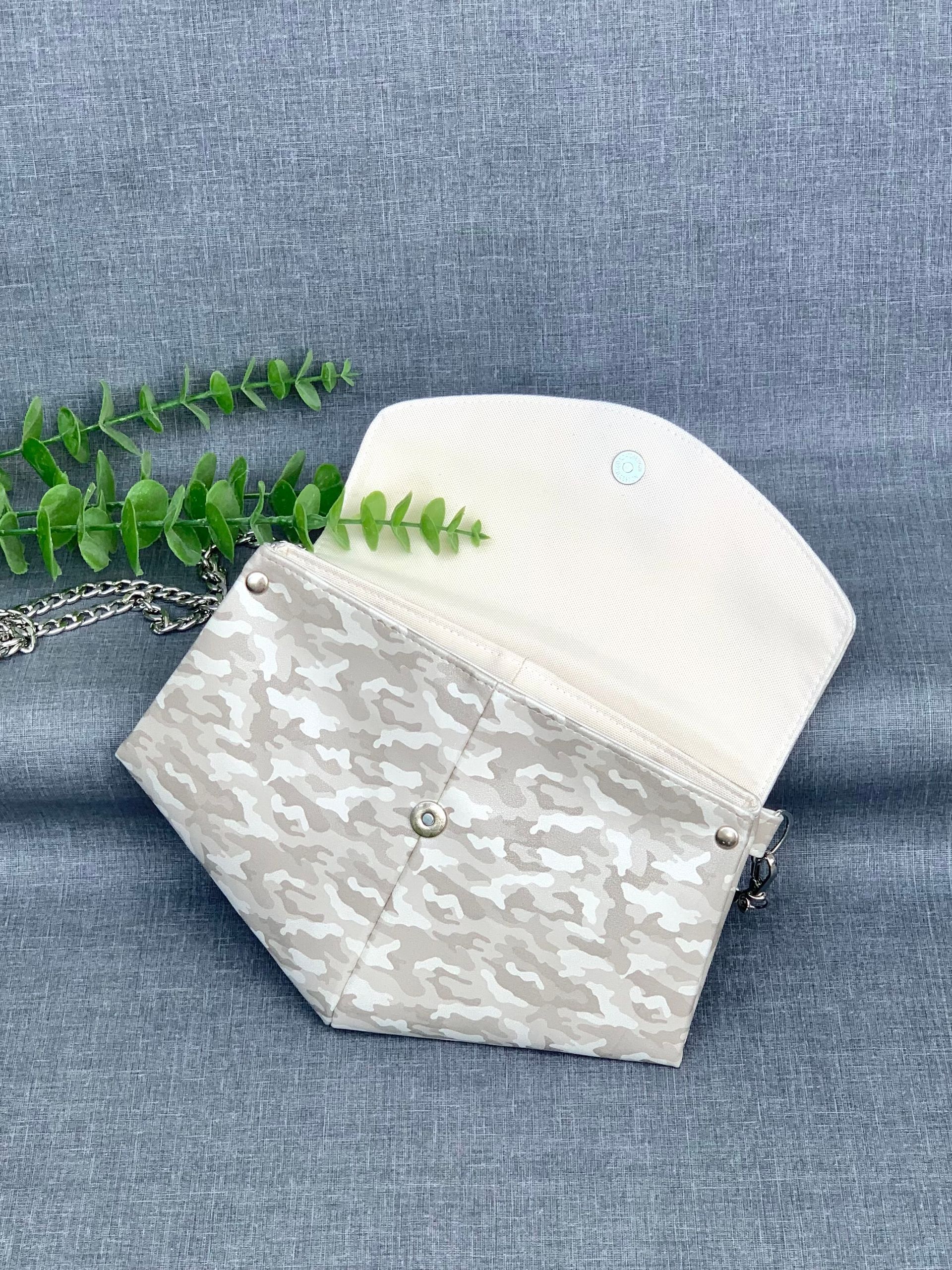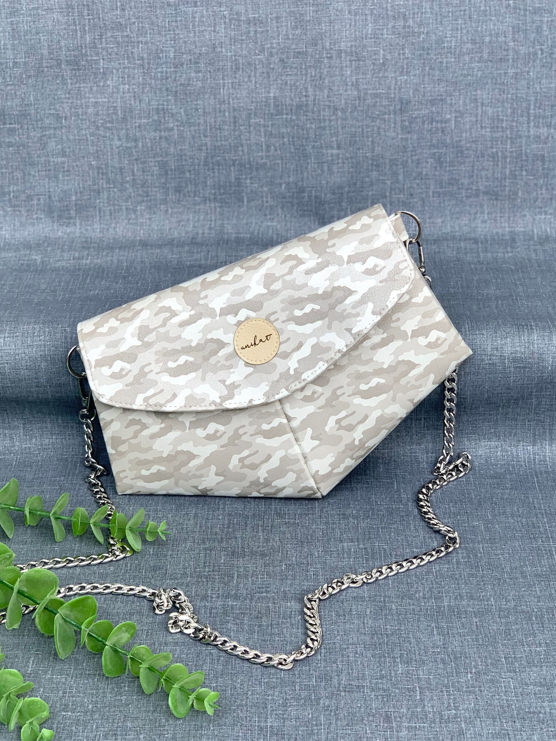 - Taschenverschluss: Reißverschluss (cremefarben mit messingfarbenem Zipper)