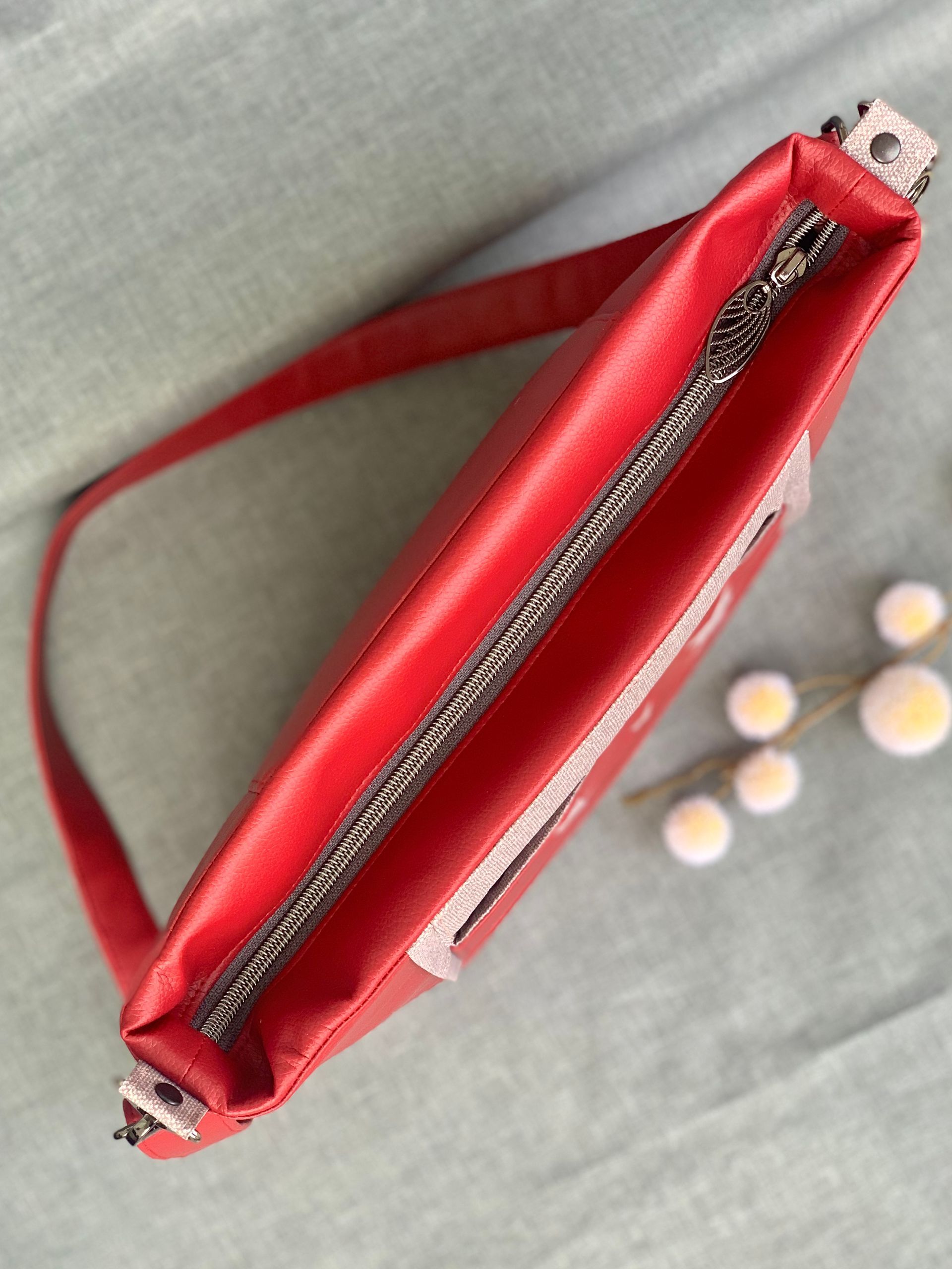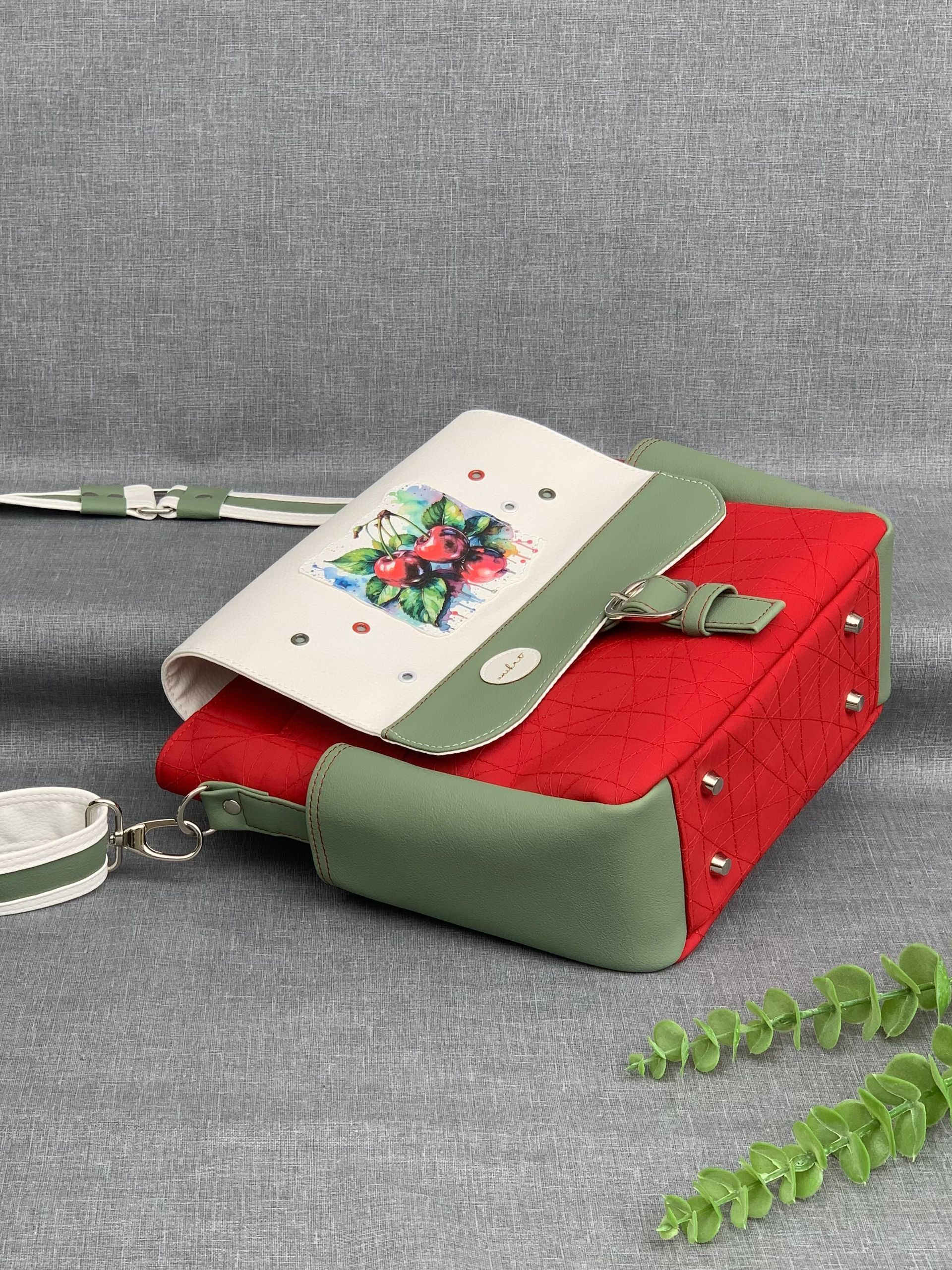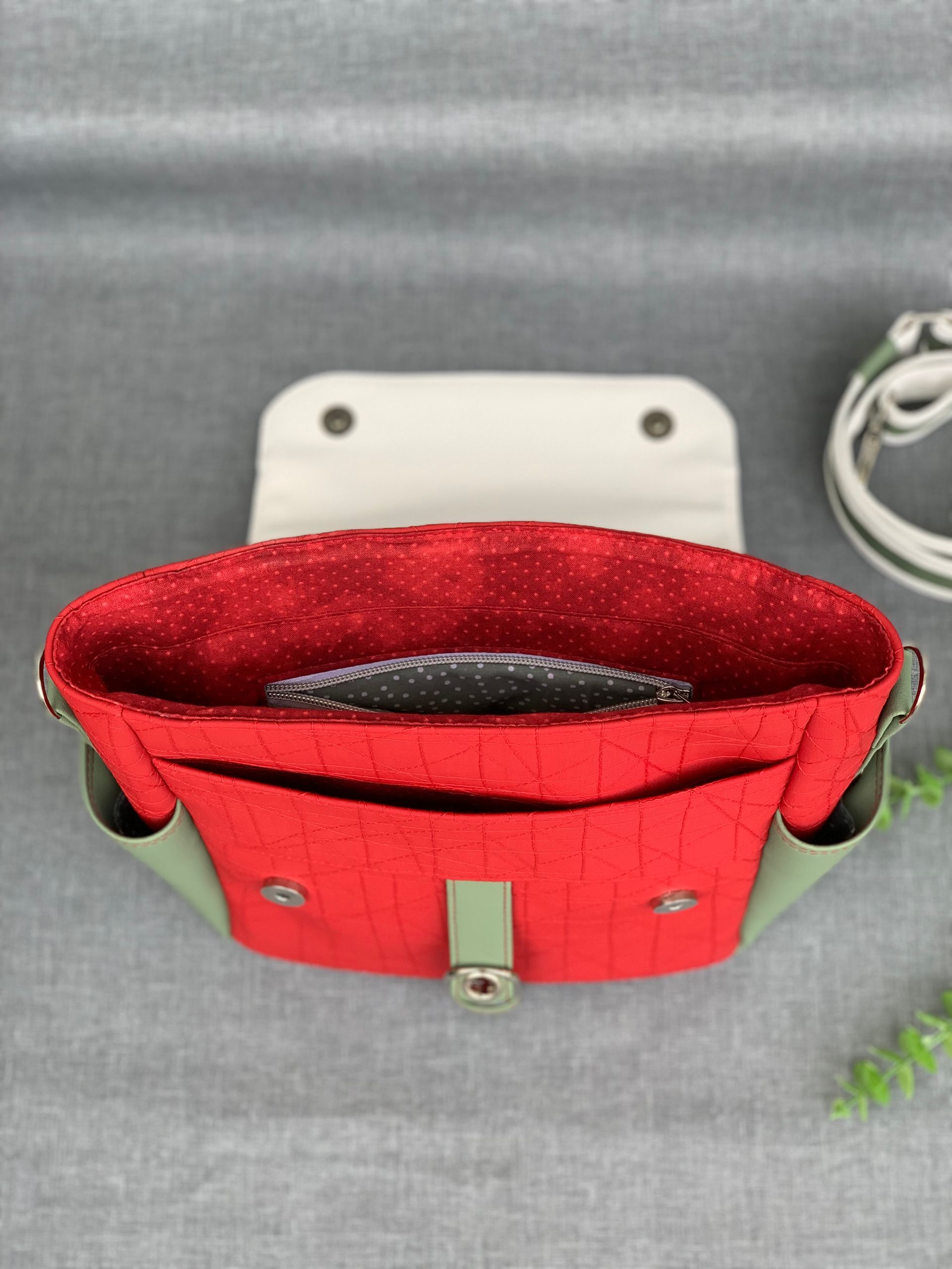 - Material: hochwertiges Lederimitat in Rot, Grün und Weiß; Baumwollstoffe (innen)
