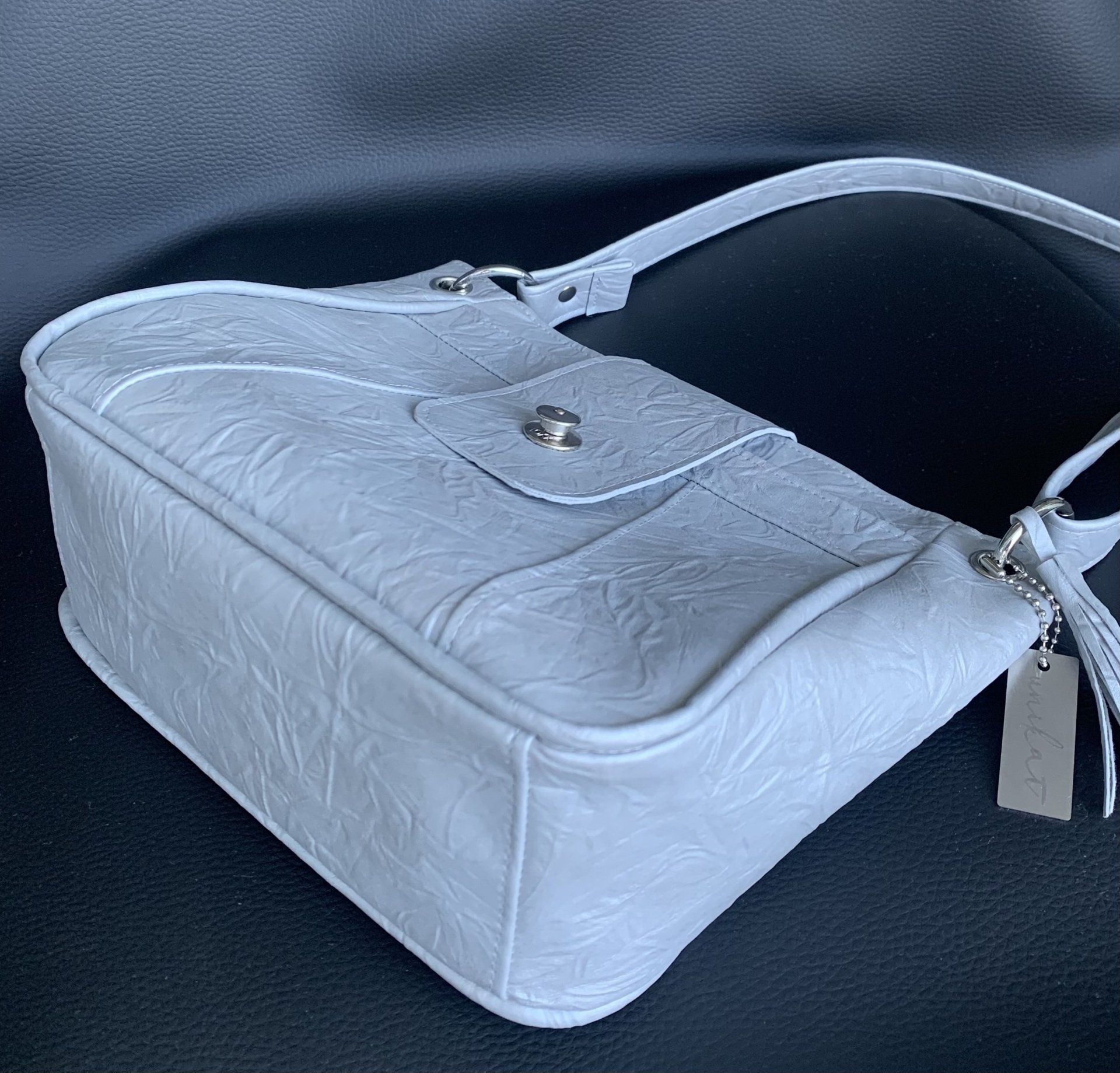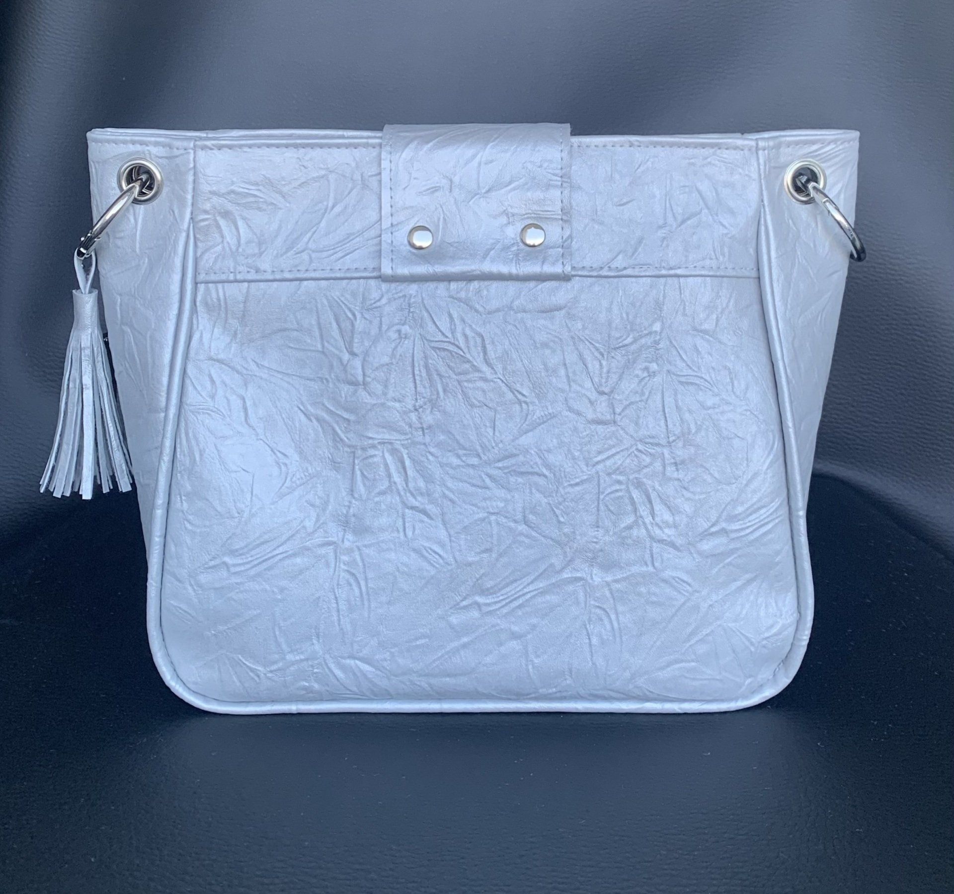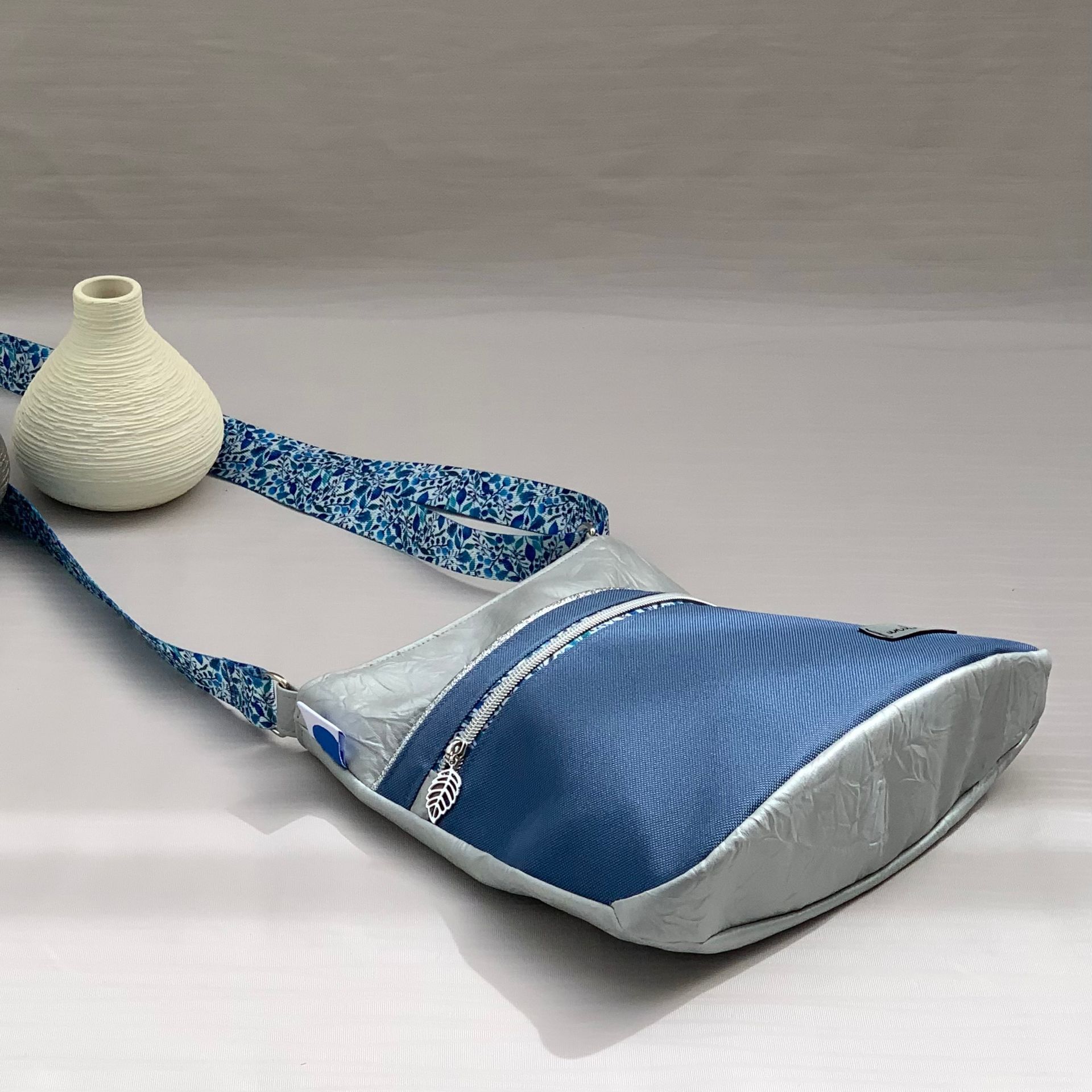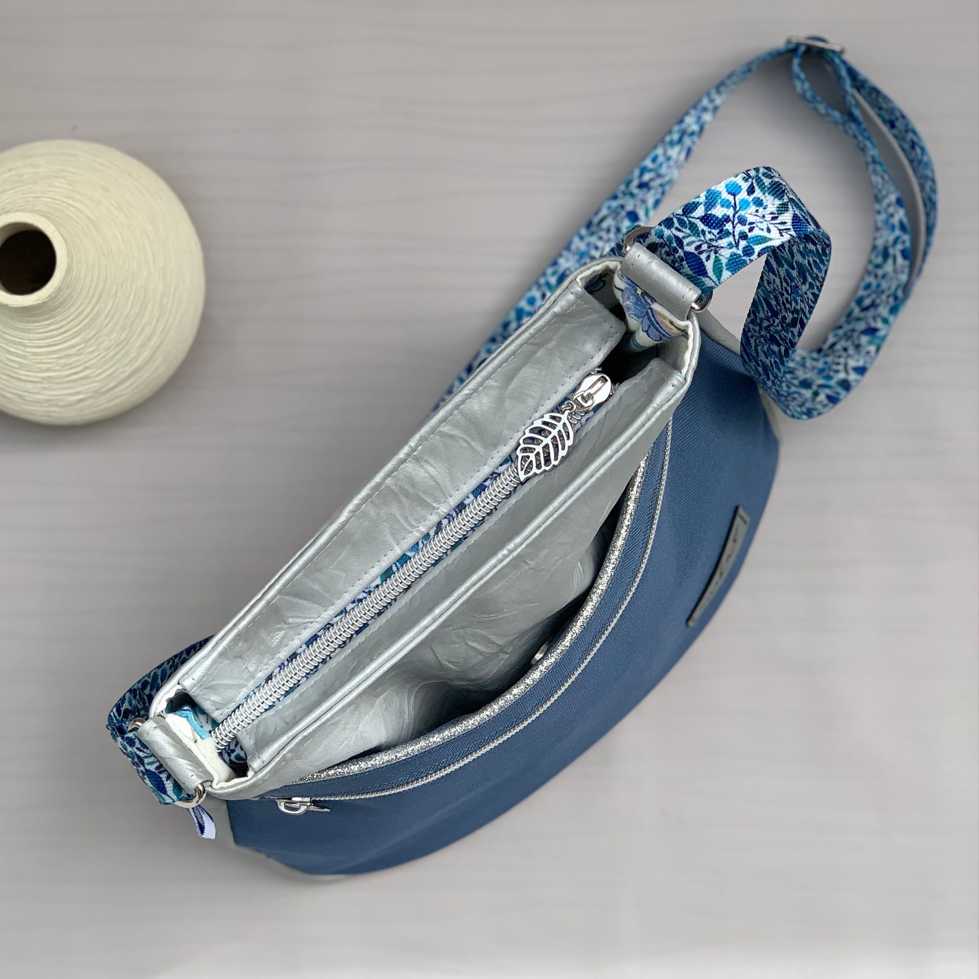 - Material: Lederimitat (Silbergrau), Oxfort600 (Blau), Canvas (innen)