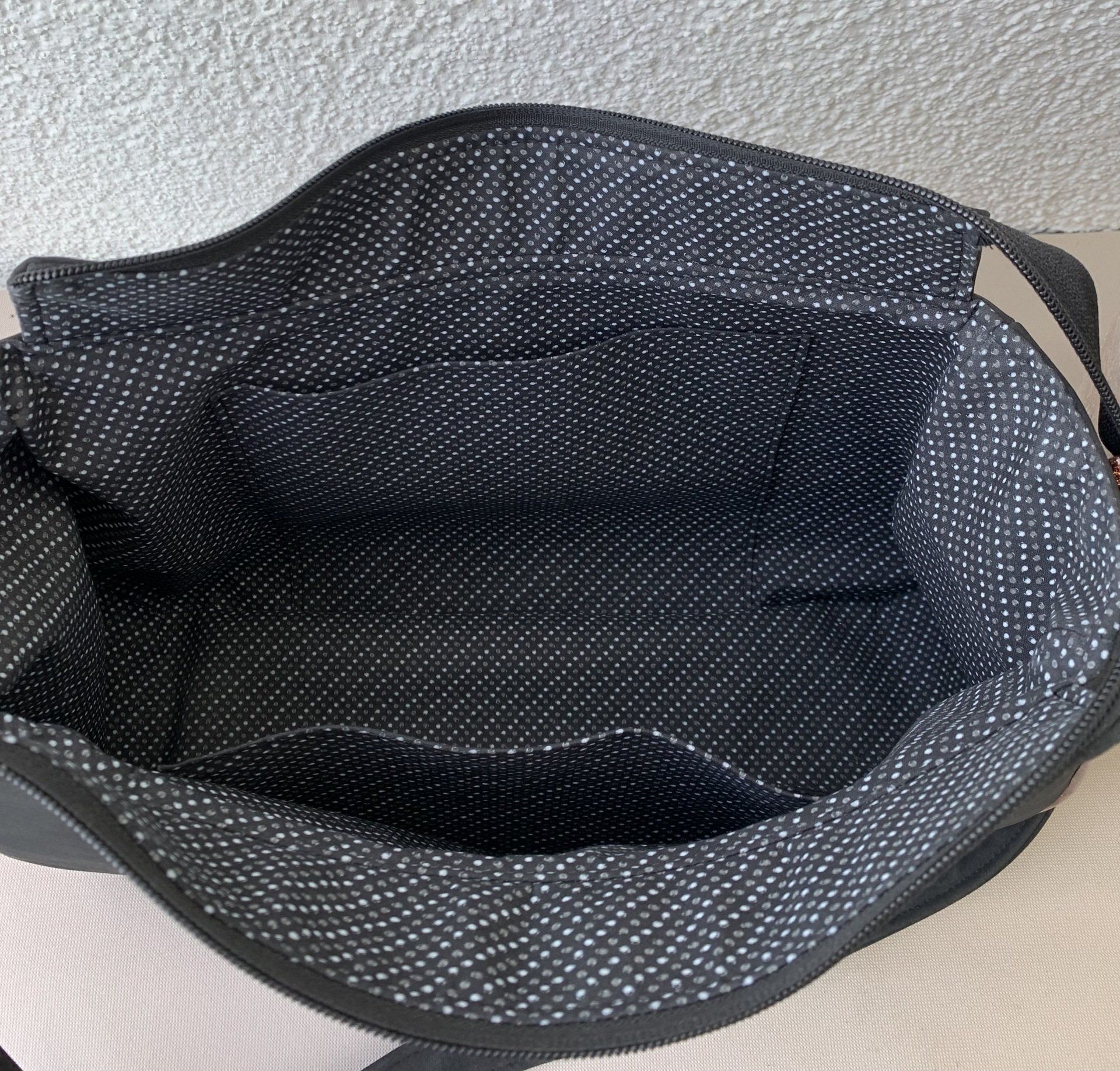 - ein Reißverschlussfach an der Taschenrückseite für z.B. Kleingeld