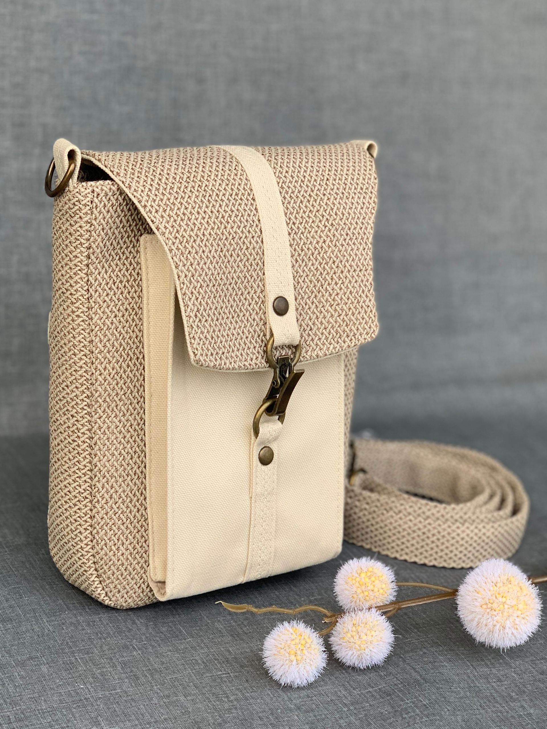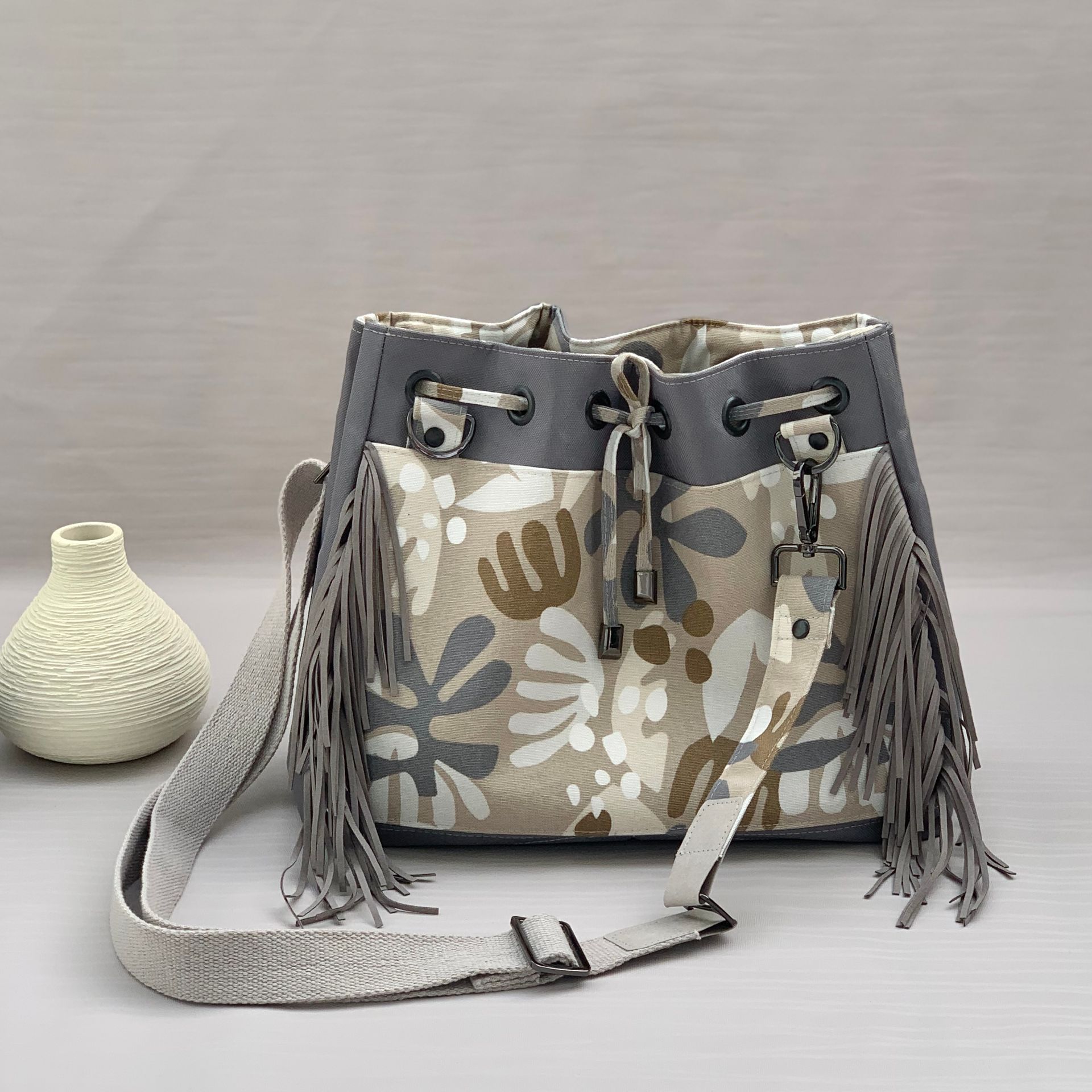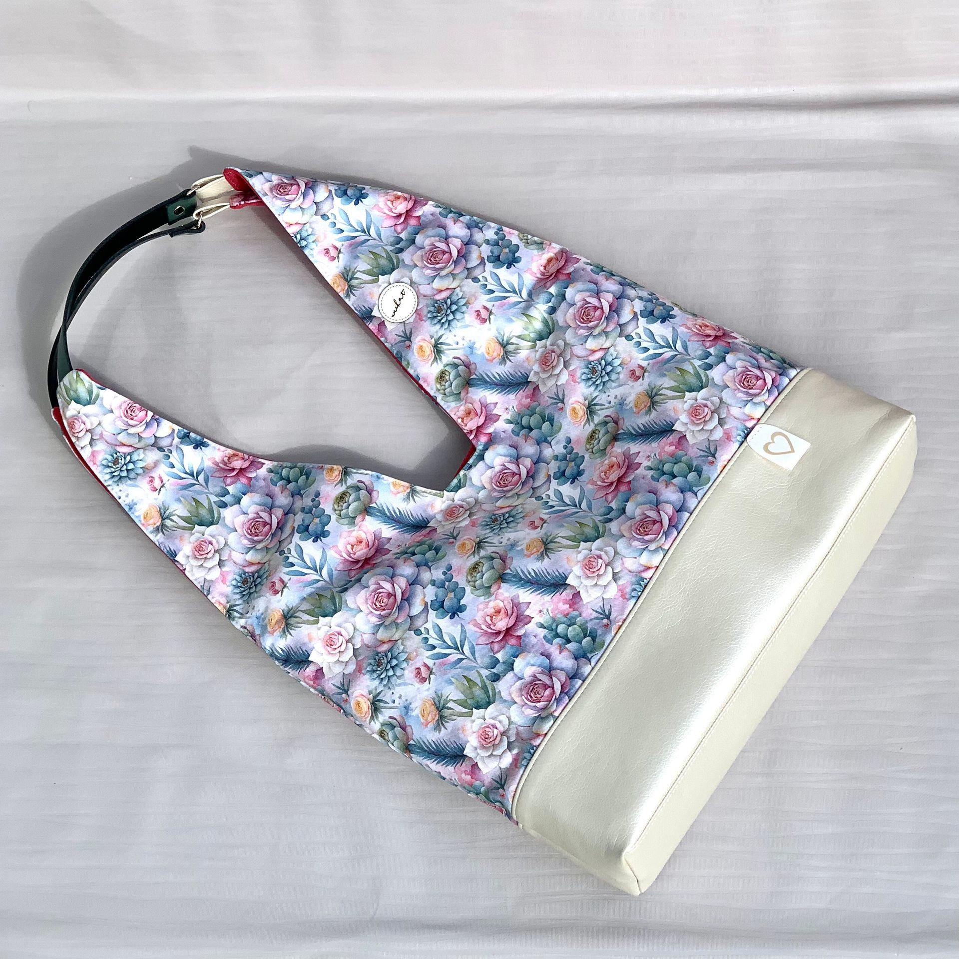 - Material: Canvas/ Gabardine ("Blumenwiese"), Kunstleder (Weiß, metallic), Canvas (unifarben Marsala), Echtlederriemen