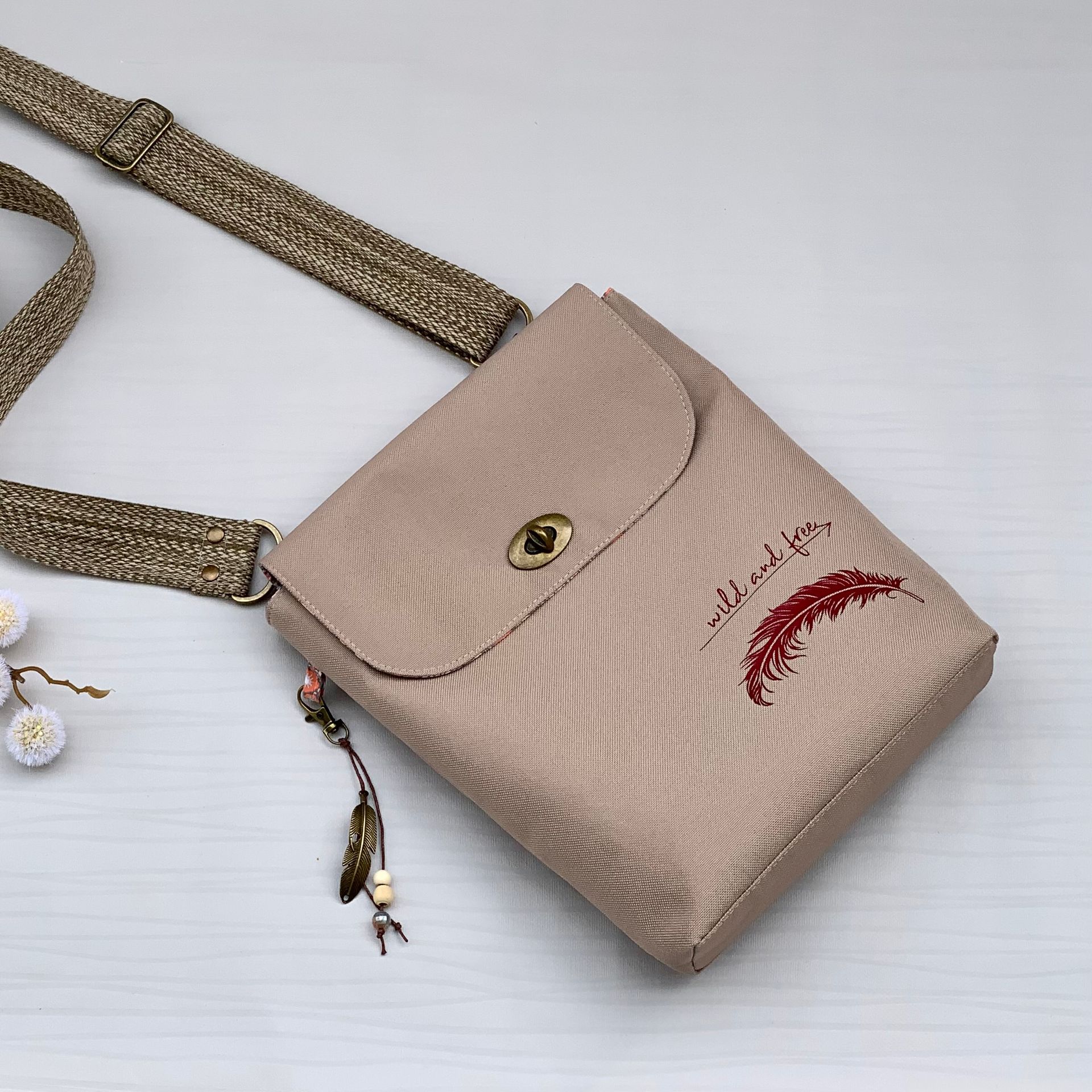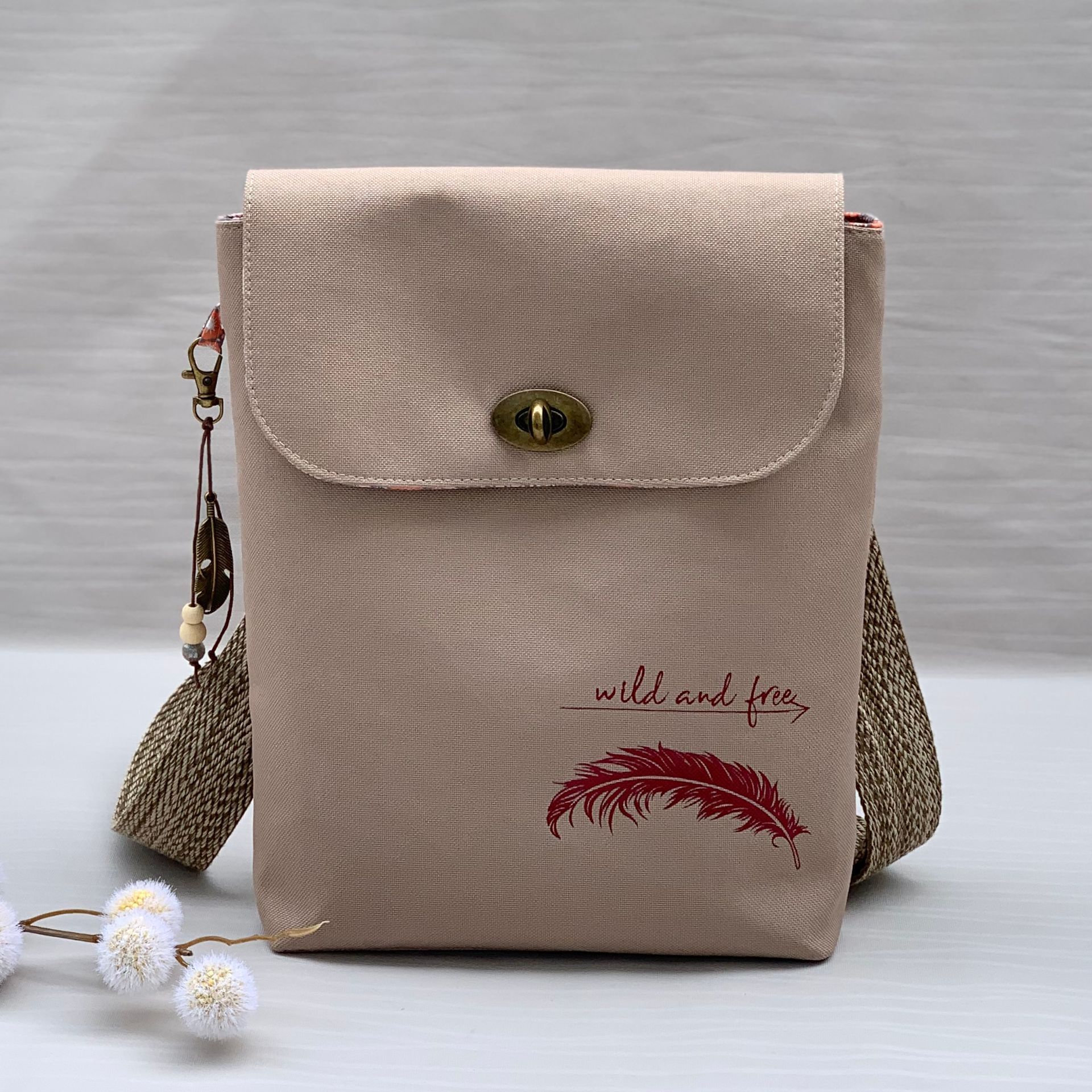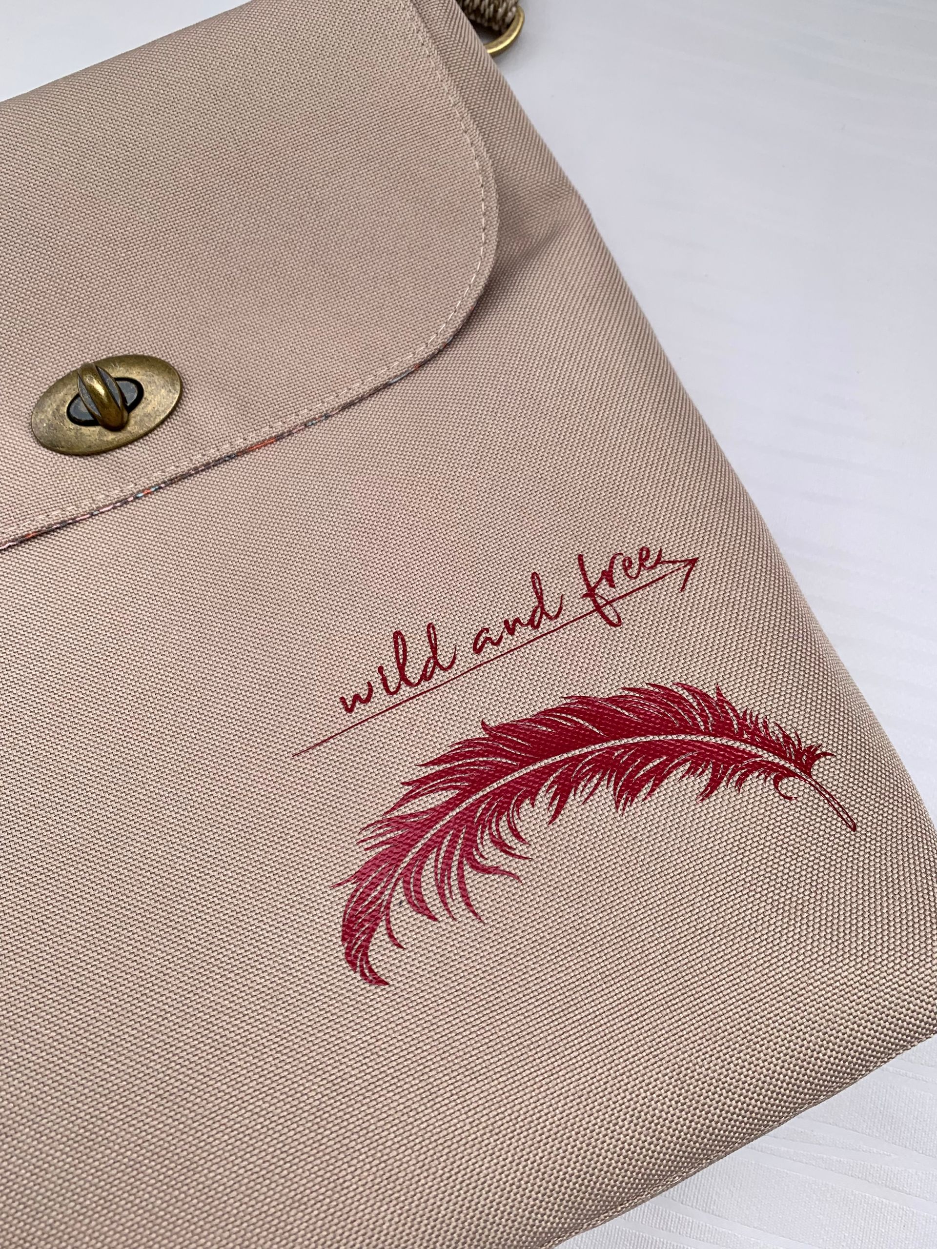 - Plott an der Taschenvorderseite "wild and free" in Metallic-Optik