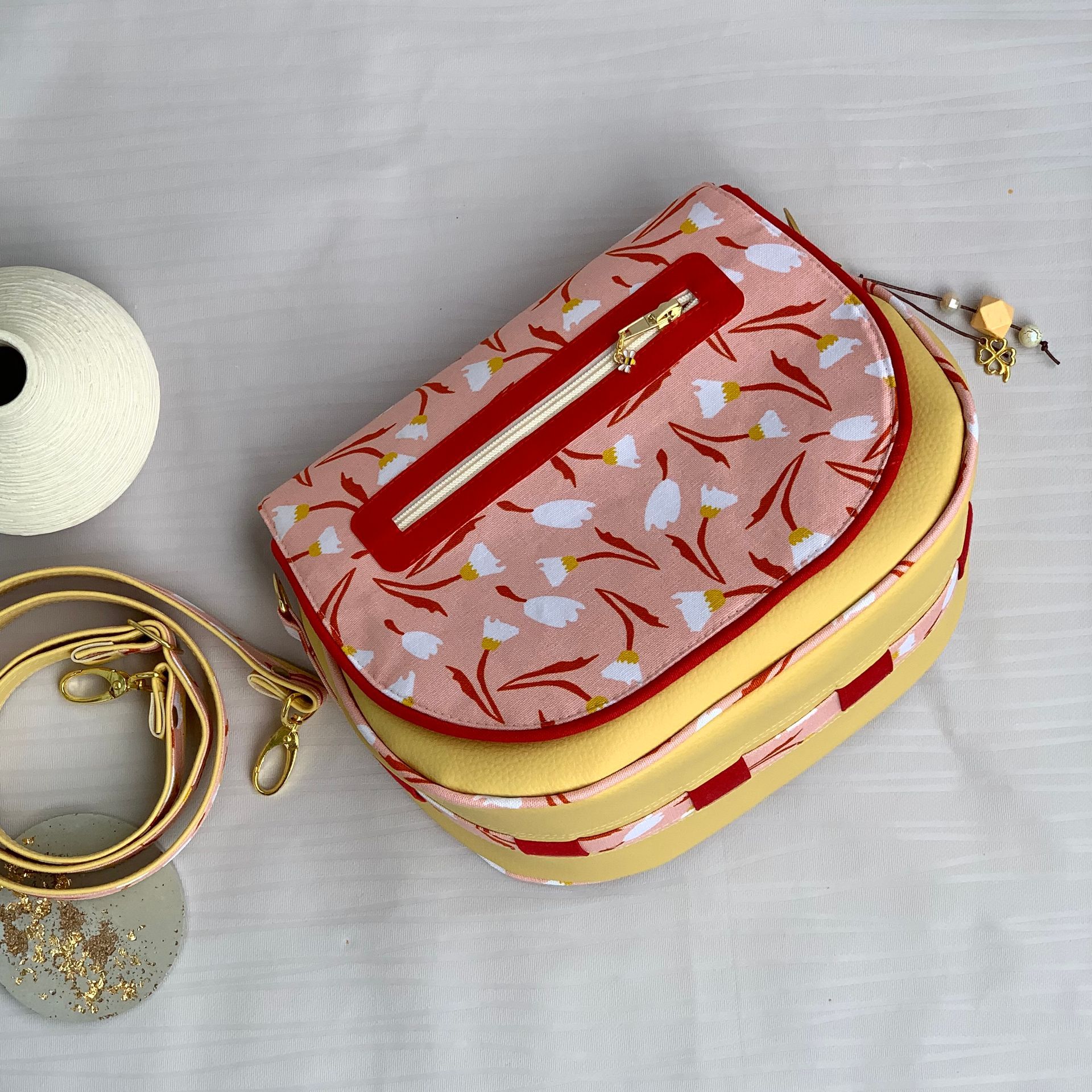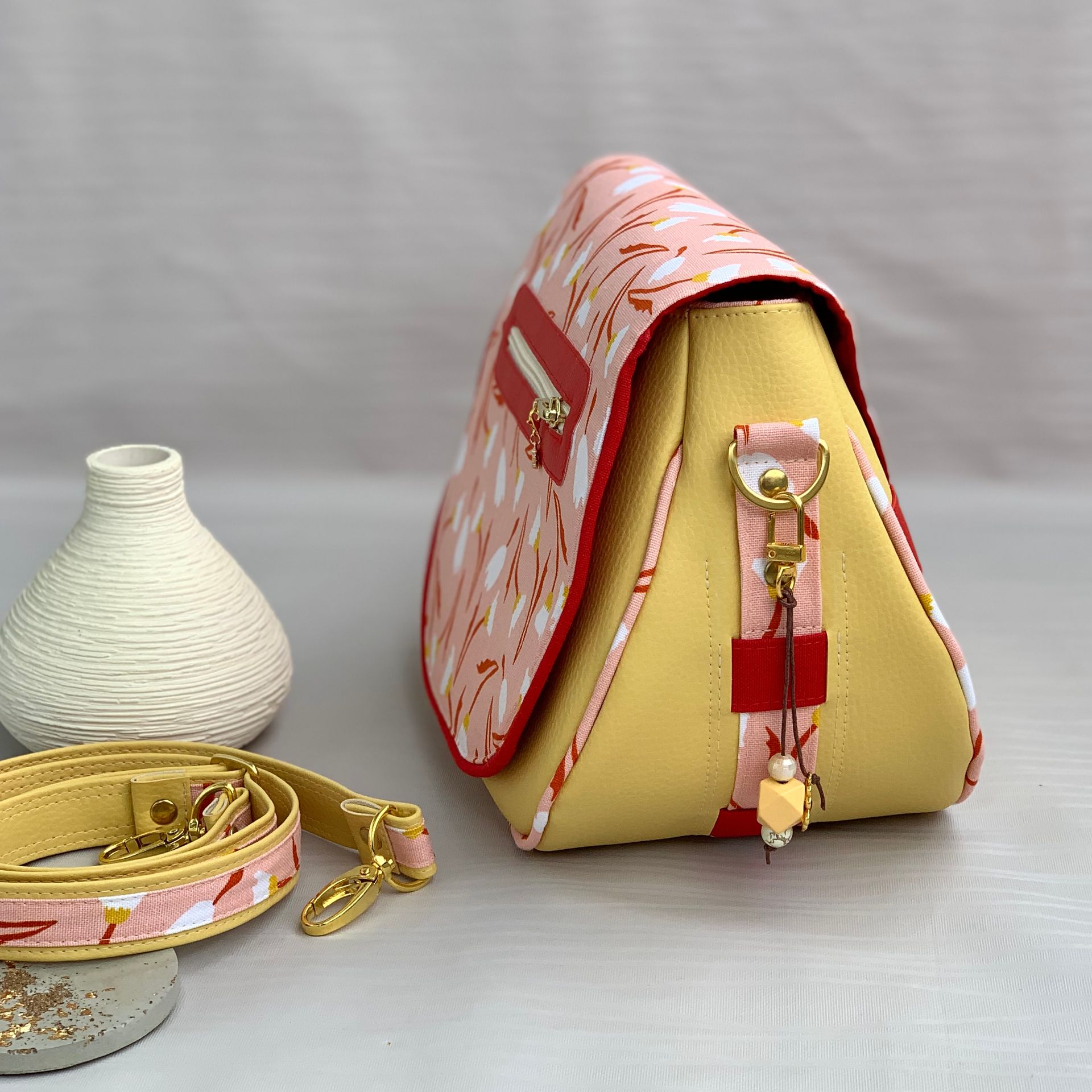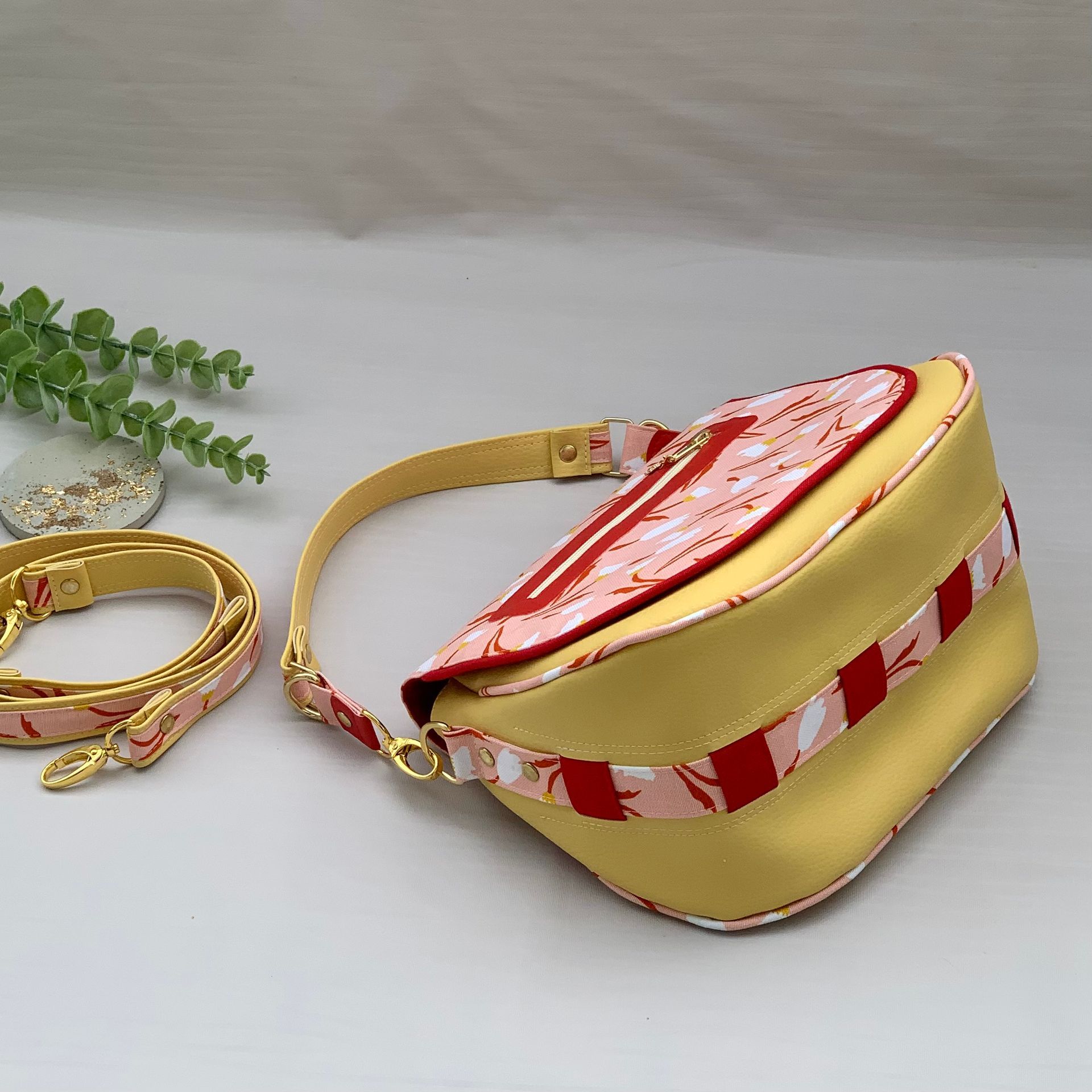 - Material: Lederimitat Gelb, Canvas (Apricot mit Blumen, Rot)