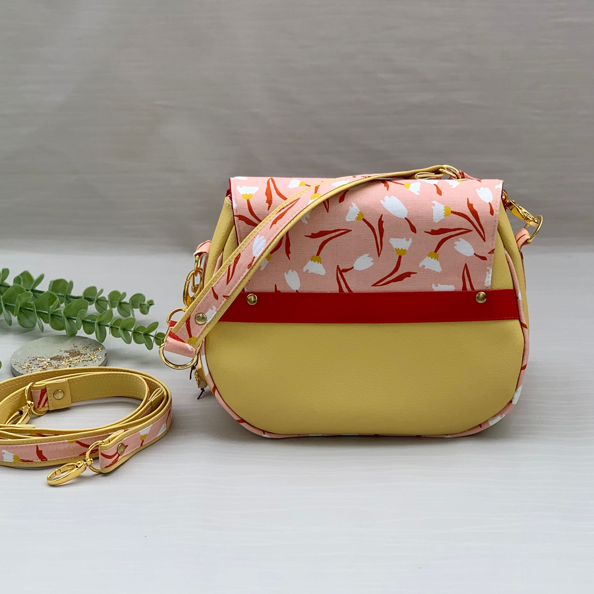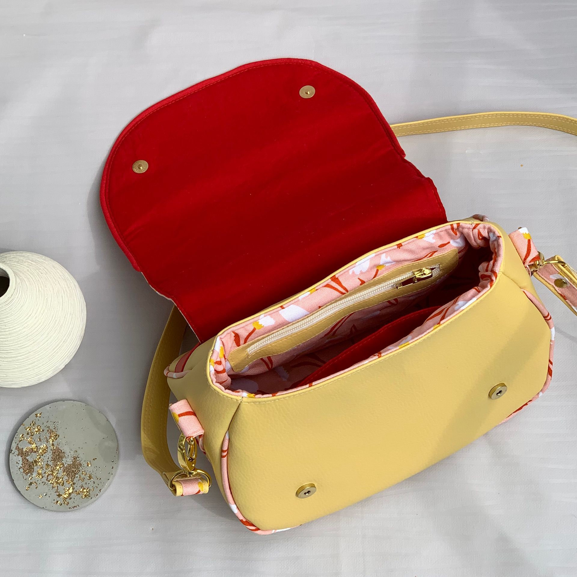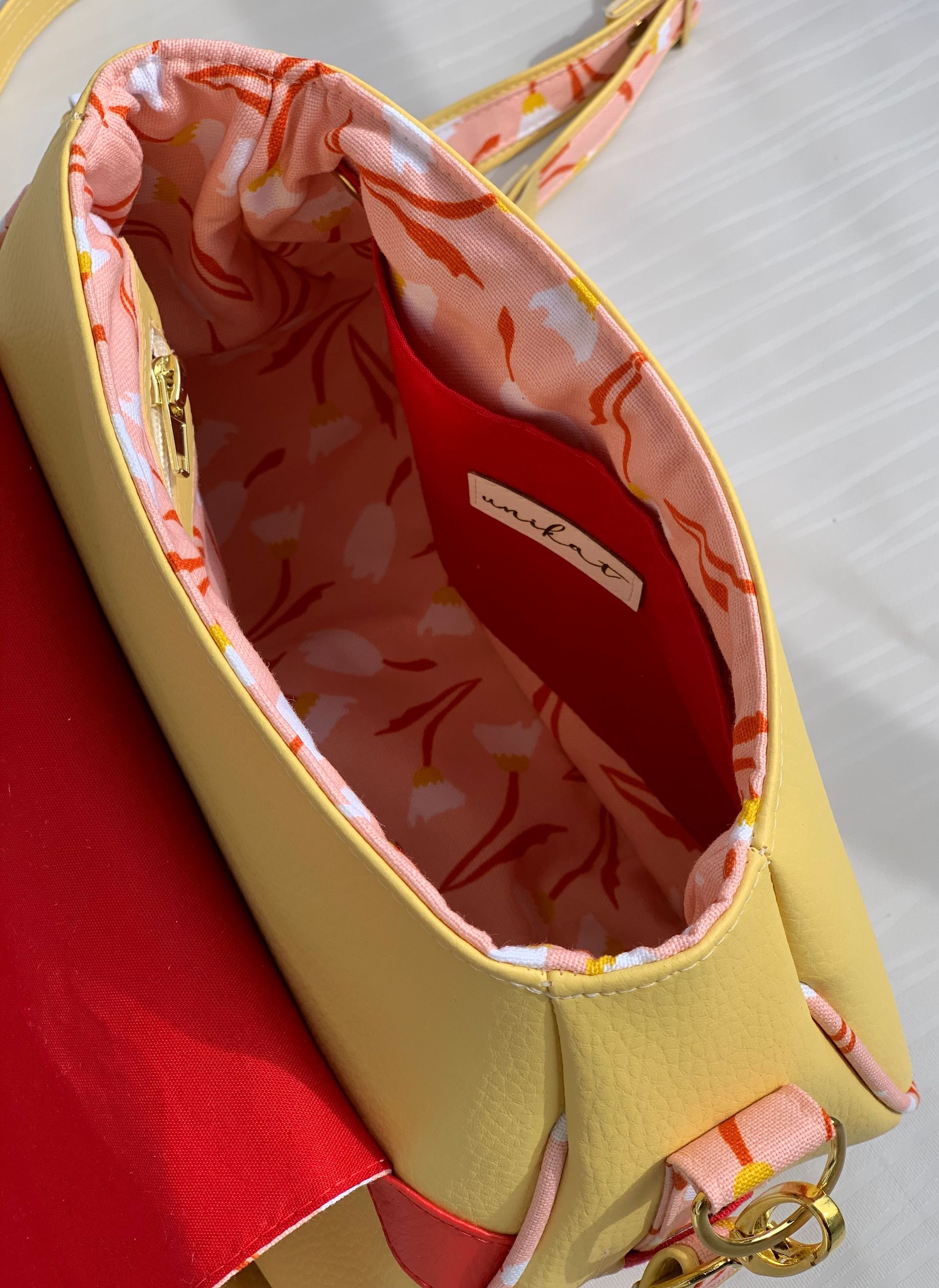 - Material: Lederimitat Gelb, Canvas (Apricot mit Blumen, Rot)